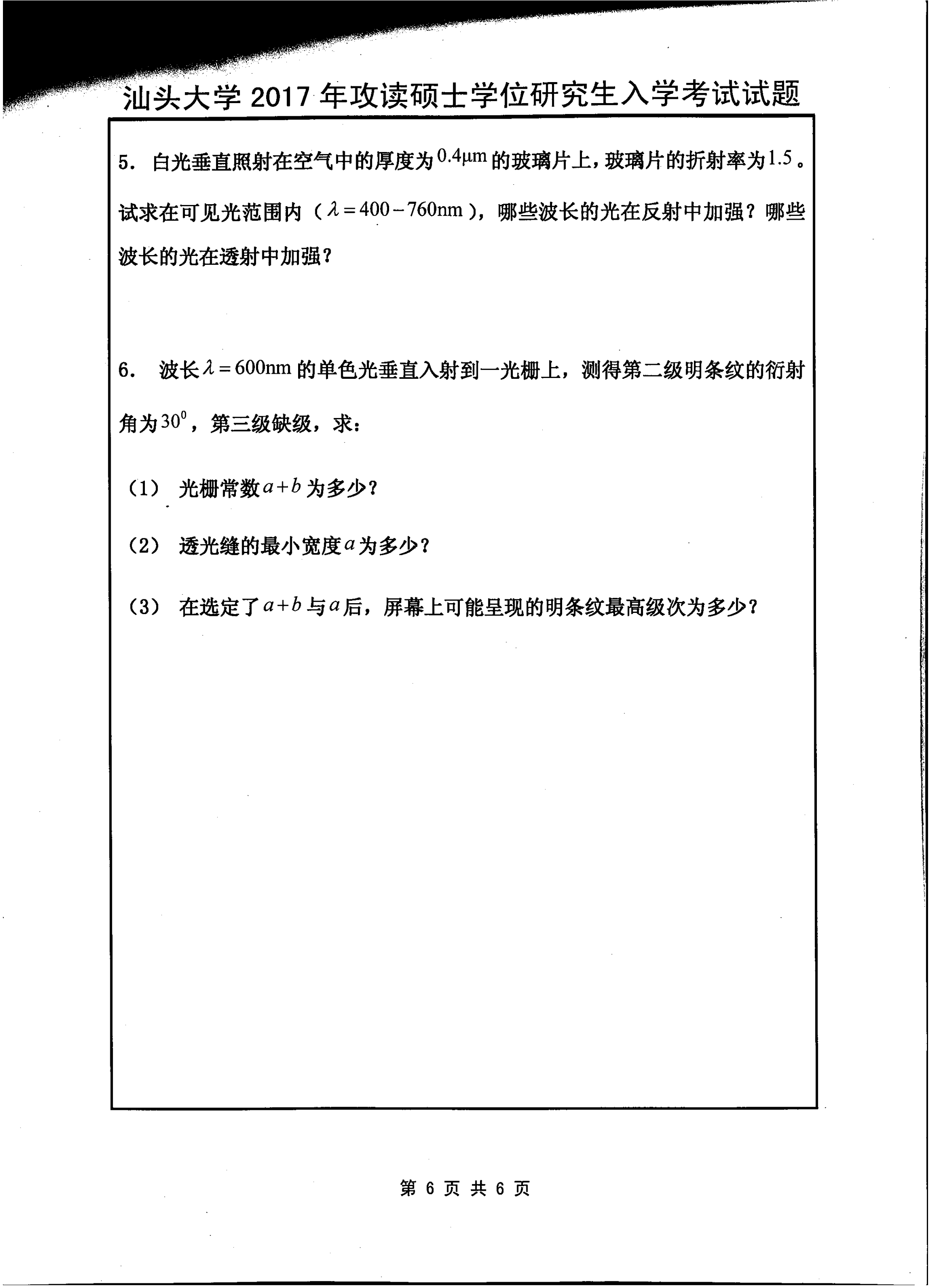 汕头大学考研辅导班:2017年汕头大学考研819普通物理学真题