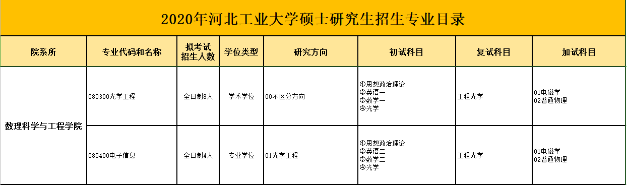 河工大考研辅导班:2020年河北工业大学考研招生专业目录-数理科学与工程学院
