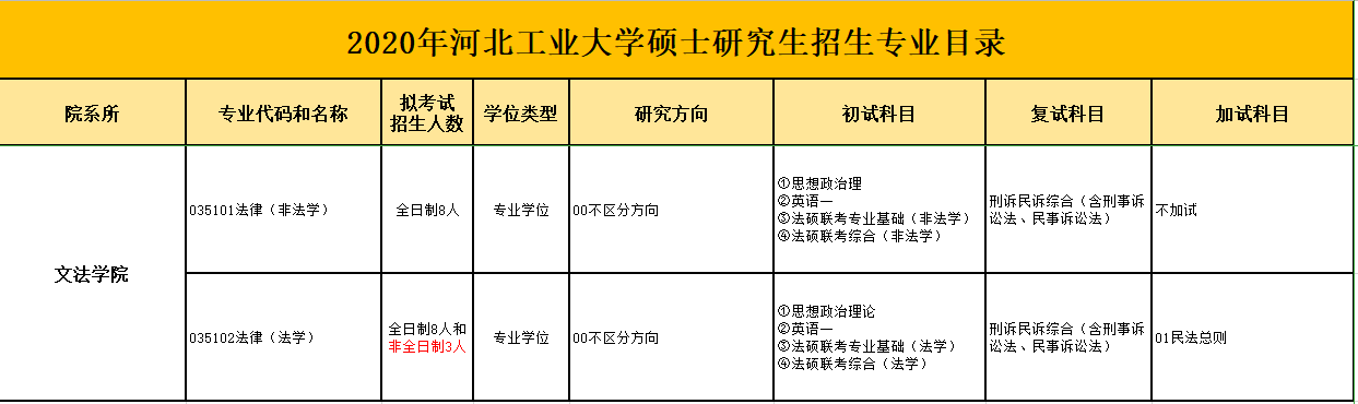 河工大考研辅导班:2020年河北工业大学考研招生专业目录-文法学院