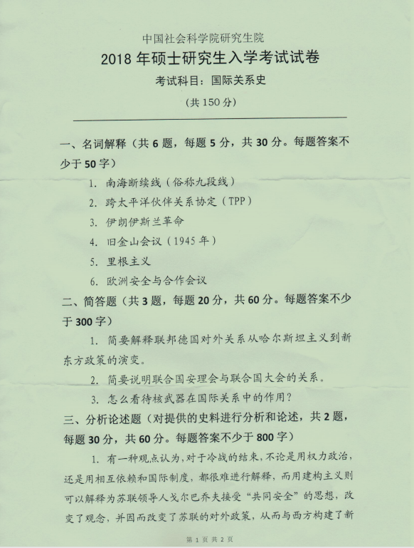 中国社会科学院大学考研辅导班:2018年中国社会科学院大学国际关系史考研真题