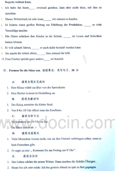 2020-2021年武汉理工考研辅导班:2010年武汉理工大学242德语考研真题
