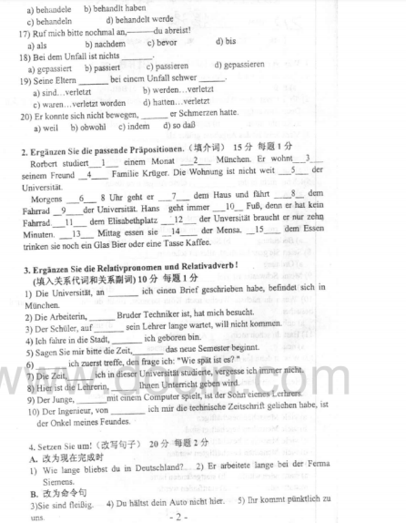 2020-2021年武汉理工考研辅导班:2002年武汉理工大学242德语考研真题
