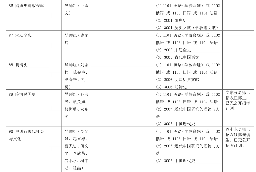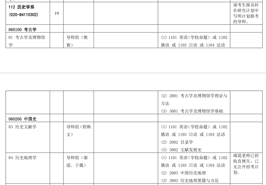 中山大学考博辅导班:中山大学2020历史学系博士研究生招生学科专业目录