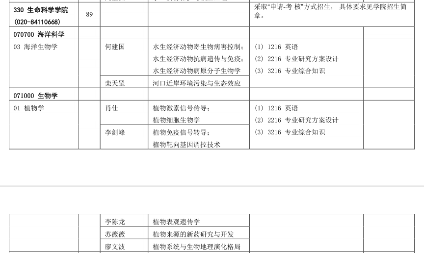 中山大学考博辅导班:中山大学2020年生命科学学院博士研究生招生学科专业目录