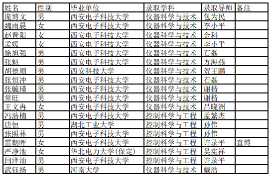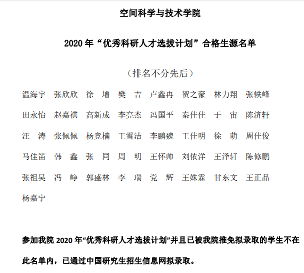 西电考研辅导班:2020年西安电子科技大学空间科学与技术学院推免生、优研计划录取名单