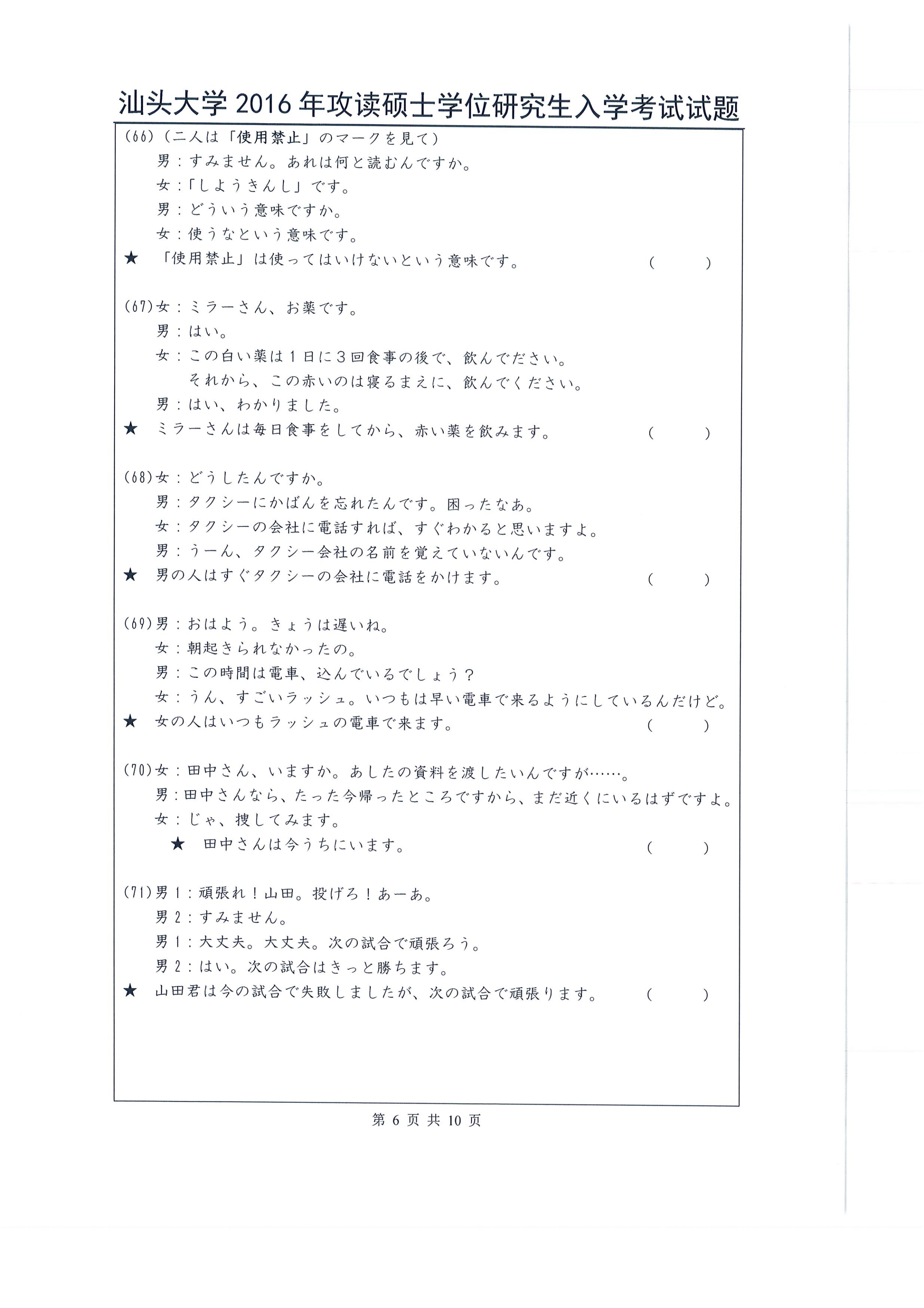 汕头大学考研辅导班:2016年汕头大学263日语考研真题