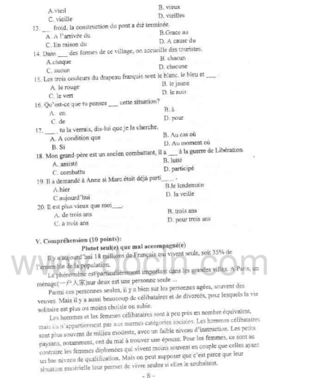 2020-2021年武汉理工考研辅导班:武汉理工大学243法语2005年考研真题