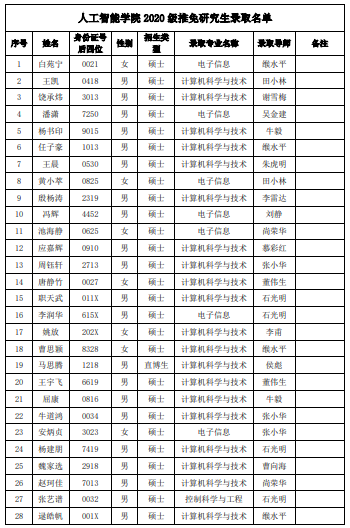 西电考研辅导班:2020年西安电子科技大学人工智能学院推免研究生录取名单公示