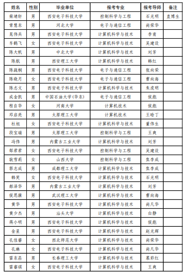 西电考研辅导班:2019年西安电子科技大学人工智能学院推荐免试硕士研究生录取名单公示
