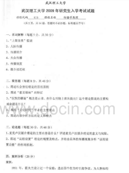 2020-2021年武汉理工考研辅导班:武汉理工大学616新闻传播理论2009考研真题