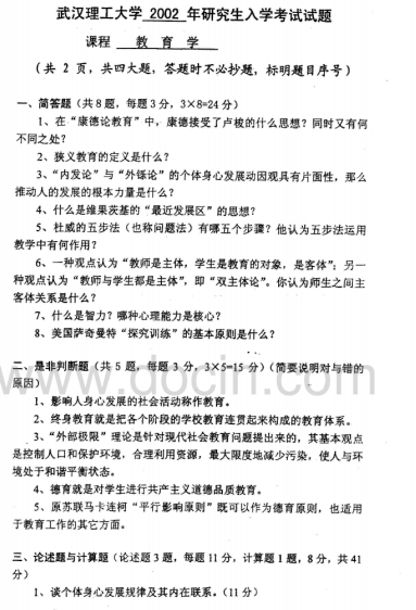 2020-2021年武汉理工考研辅导班:武汉理工大学618教育学2002年考研真题