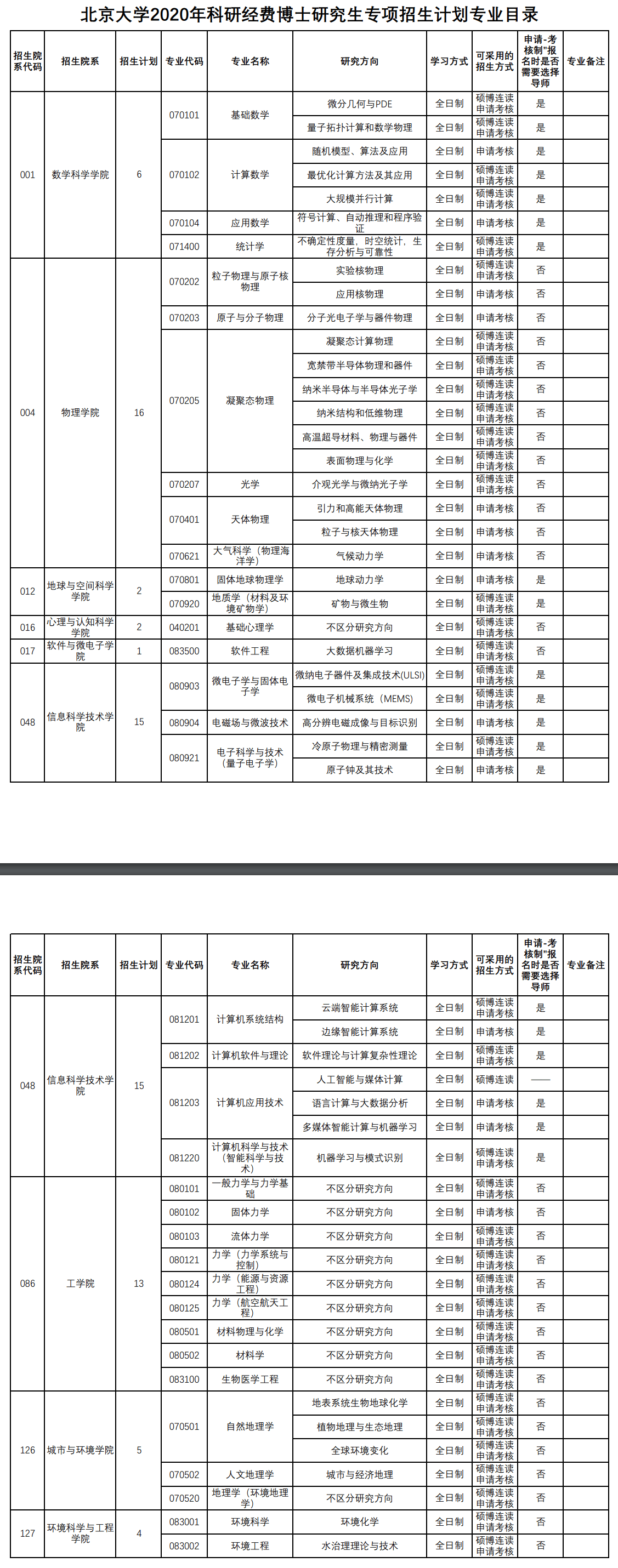 北京大学考博辅导班:2020年北京大学科研经费博士研究生专项招生计划专业目录