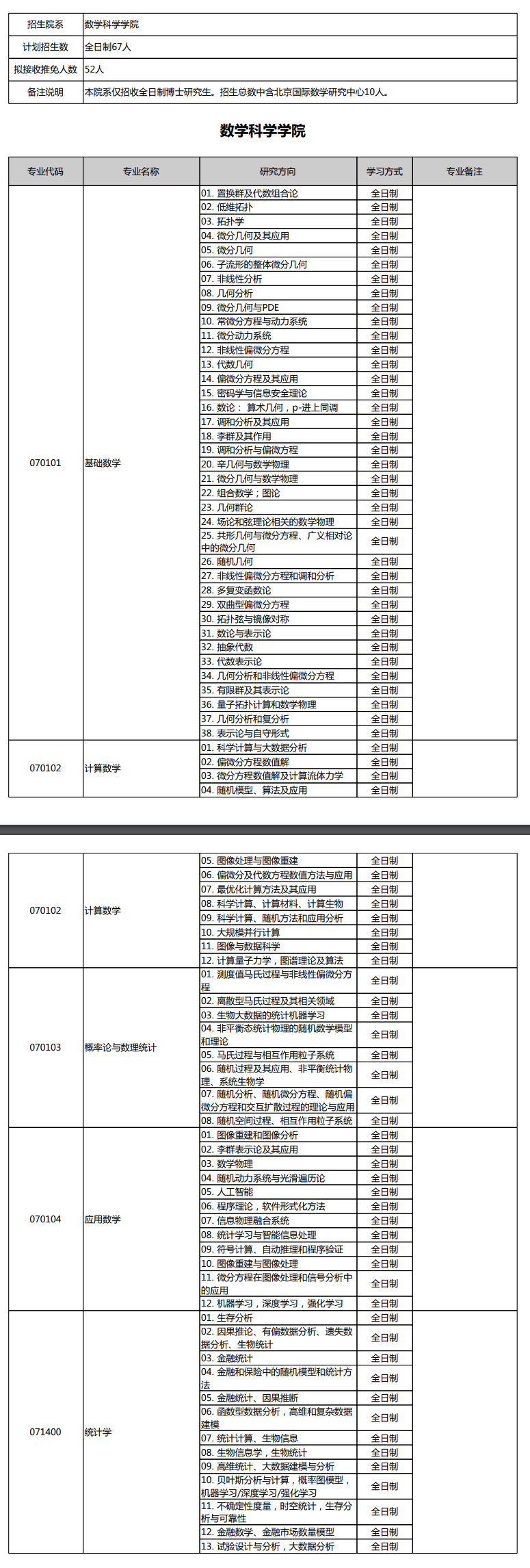 北京大学考博辅导班:北京大学数学科学学院2020年博士研究生招生目录及研究方向