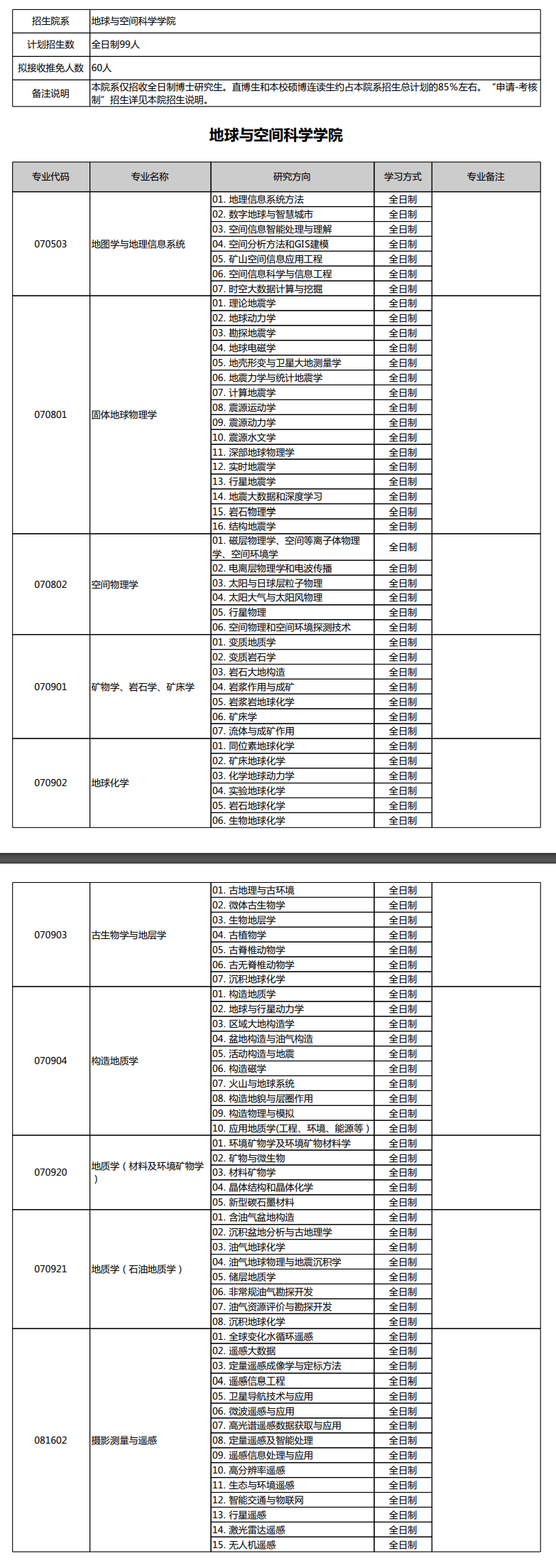 北京大学考博辅导班:北京大学地球与空间科学学院2020年博士研究生招生目录及研究方向