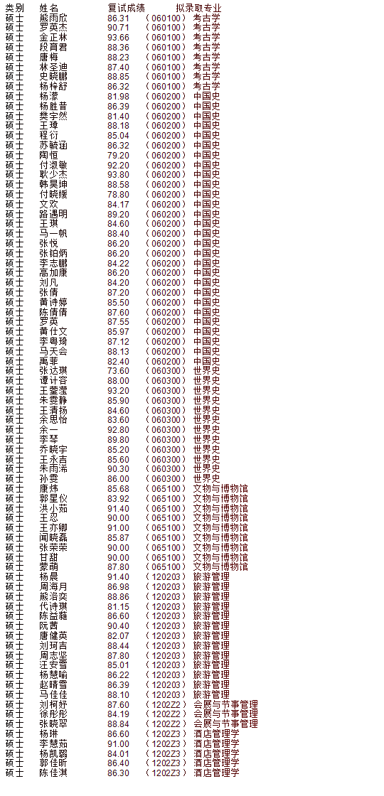 川大考研辅导班:四川大学历史文化学院(旅游学院)2020年推免生录取名单公示