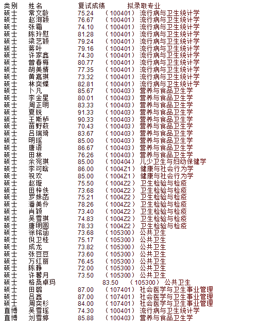 川大考研辅导班:四川大学公共卫生学院2020年推免生录取名单公示
