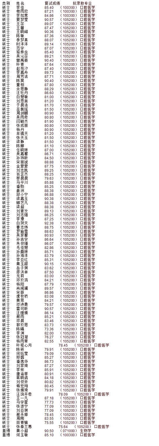 川大考研辅导班:四川大学口腔医学院、口腔疾病研究国家重点实验室2020年推免生录取名单公示