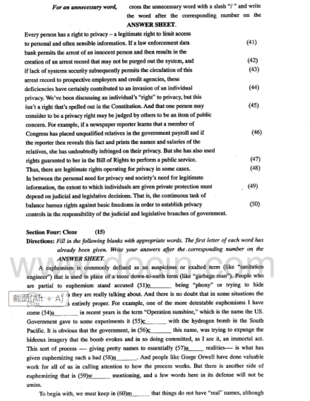2020-2021年武汉理工考研辅导班:武汉理工大学619基础英语2006考研真题