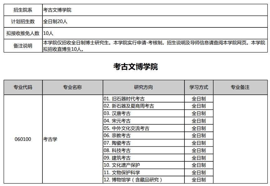 北京大学考博辅导班:北京大学考古文博学院2020年博士研究生招生专业、研究方向及招收名额