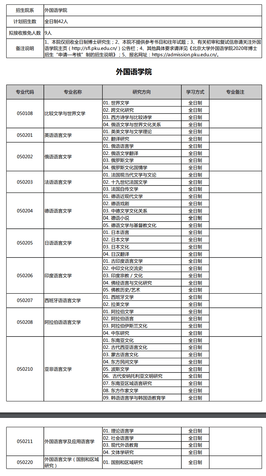 北京大学考博辅导班:北京大学外国语学院2020年博士研究生招生专业、研究方向及招收名额