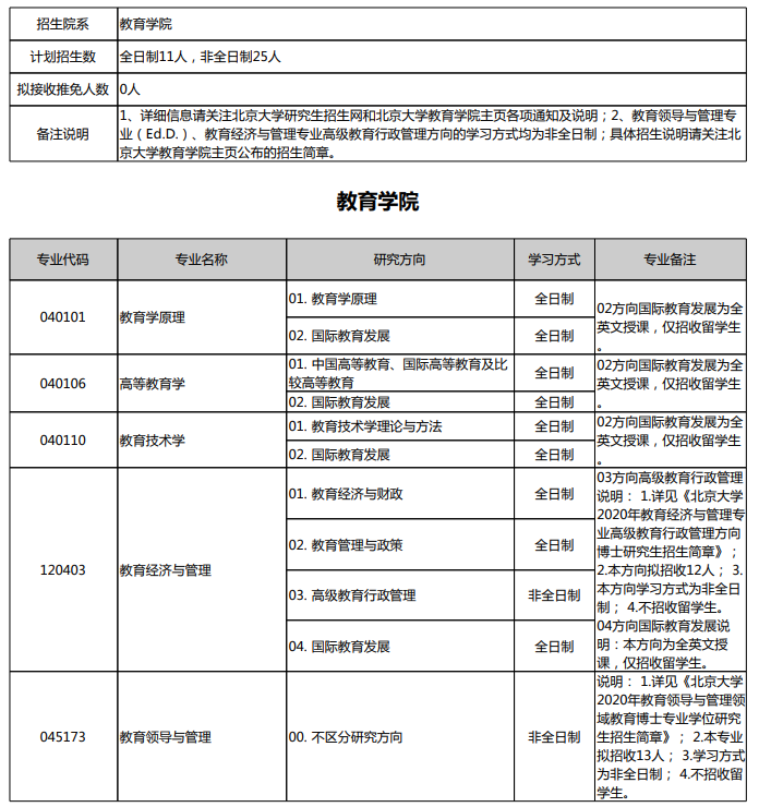 北京大学考博辅导班:北京大学教育学院2020年博士研究生招生专业、研究方向及招收名额