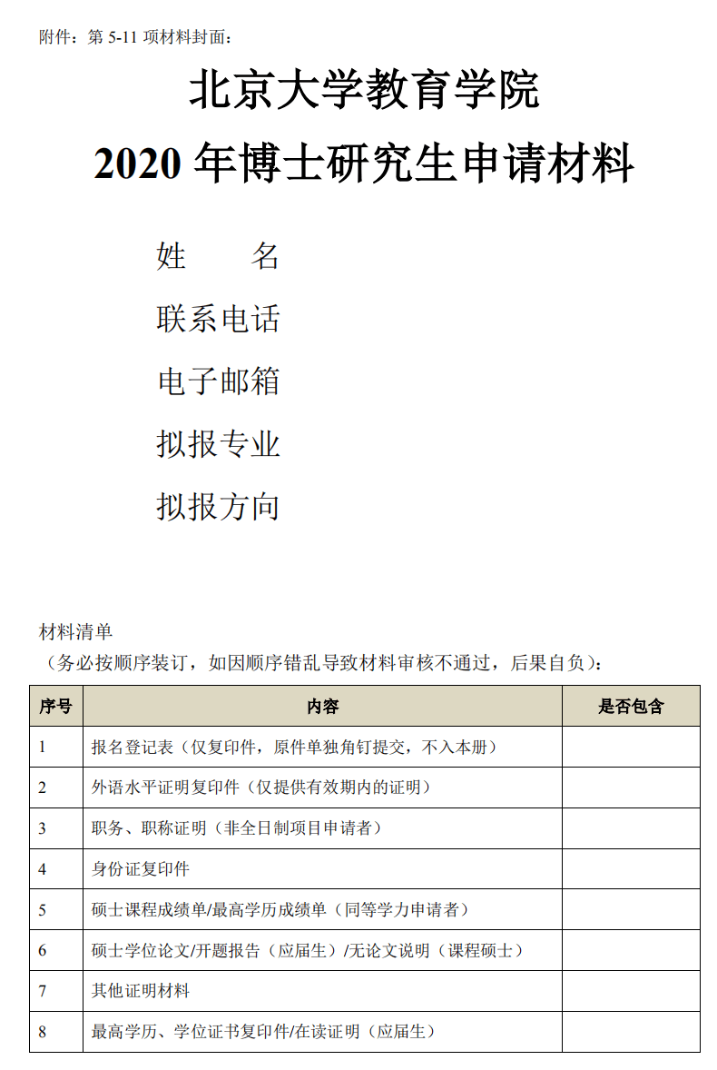 (5)北京大学2020年攻读博士学位研究生报考登记表(仅复印件,原件不装订);