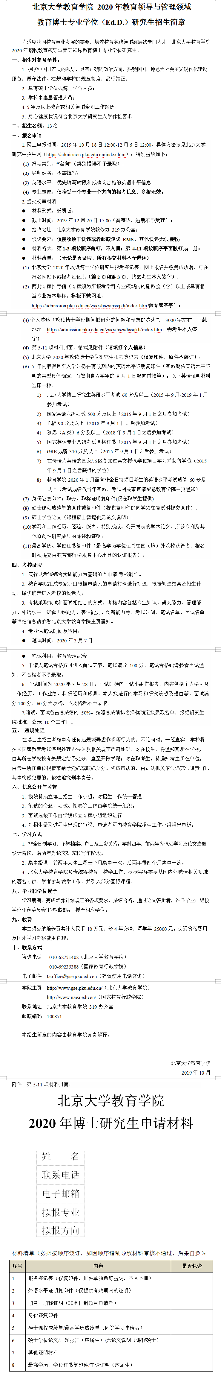 北京大学考博辅导班:2020年北京大学教育学院教育领导与管理领域-教育博士专业学位(Ed.D.)研究生招生简章