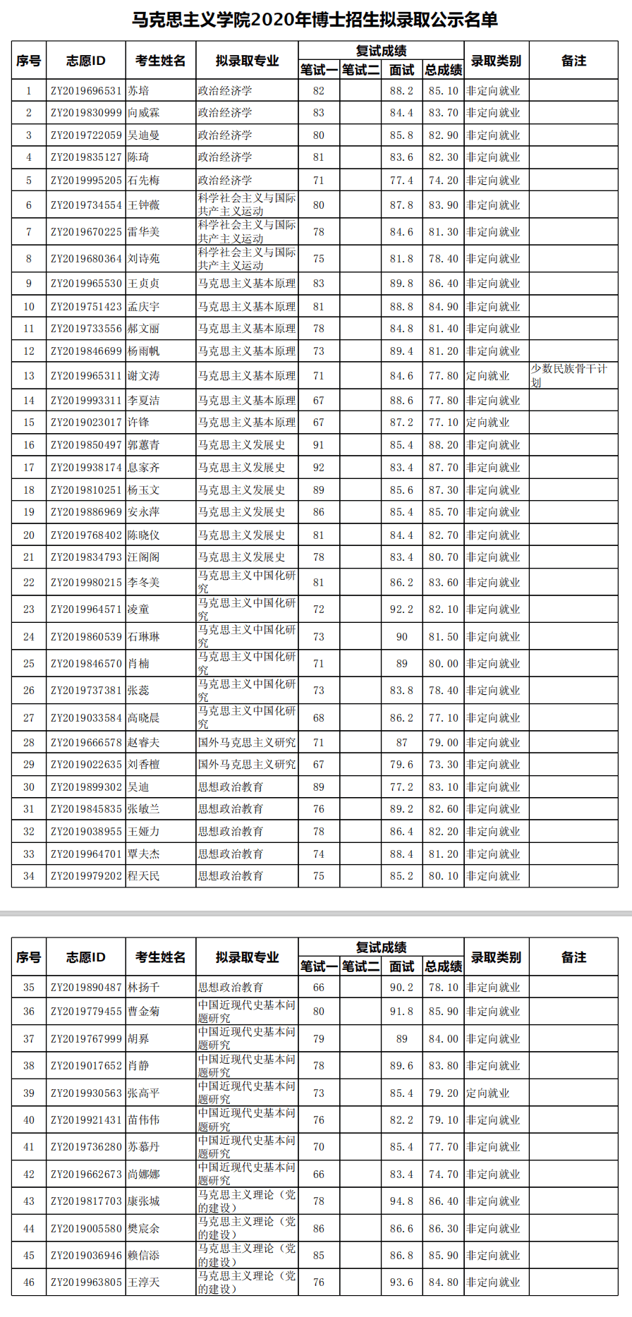 北京大学考博辅导班:北京大学马克思主义学院2020年博士招生拟录取公示名单