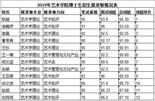 2019年北京大学艺术学院博士研究生招生拟录取名单,自2019年4月4日起公示10个工作日,有异议请在期限内提出。