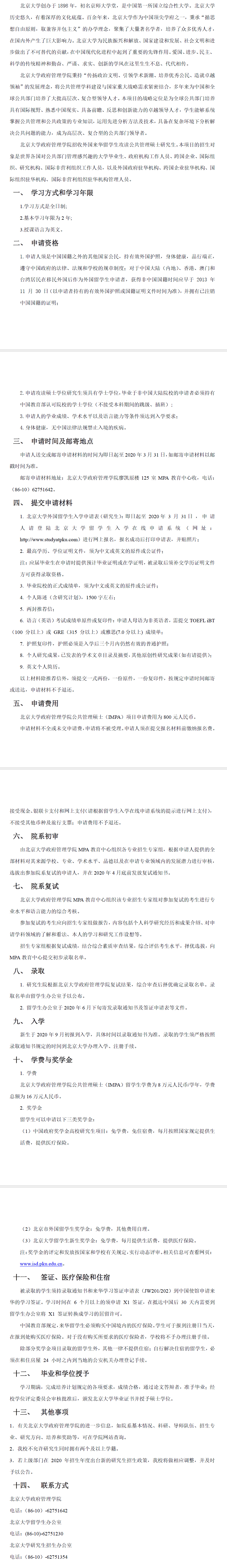 北京大学考研辅导班:2020年北京大学政府管理院公共管理硕士(IMPA项目)招生简章