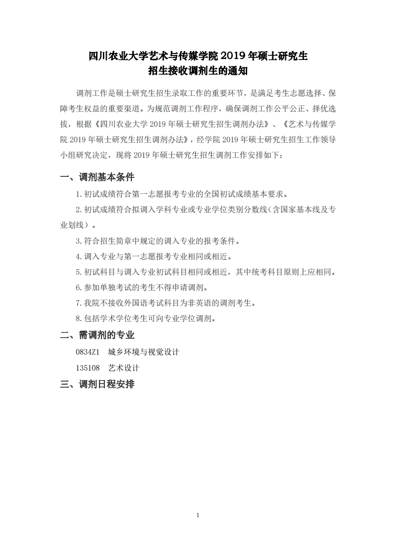 四川农大考研辅导:四川农业大学艺术与传媒学院2019年硕士研究生招生调剂办法
