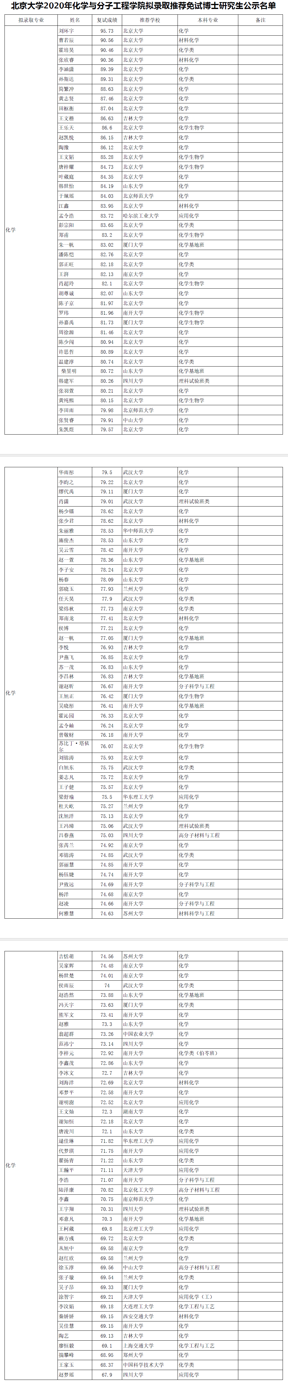 北京大学考博辅导班:北京大学化学与分子工程学院2020年拟录取推荐免试博士研究生公示名单