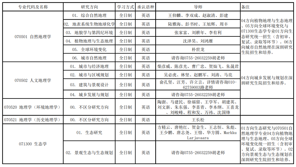 北京大学考博辅导班:北京大学城市与环境学院2020年博士招生目录补充版