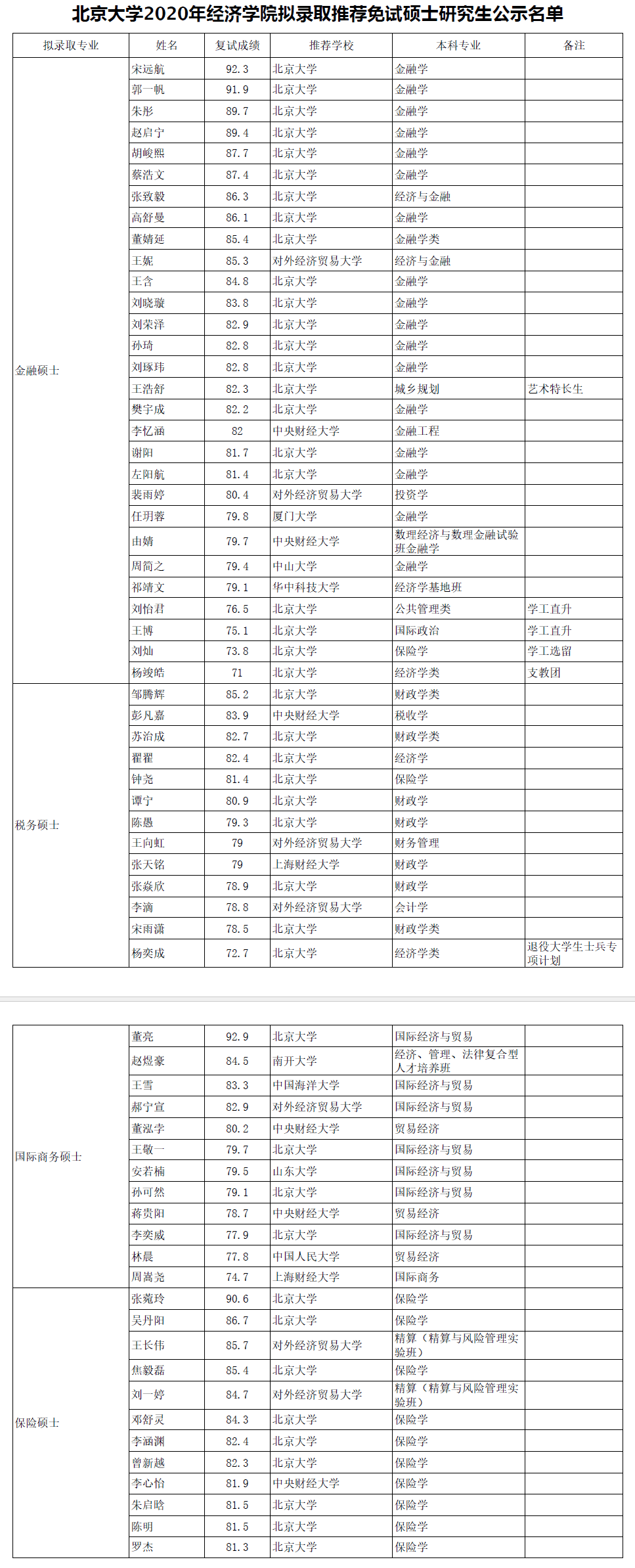 北京大学考研辅导班:北京大学经济学院2020年拟录取推荐免试硕士研究生公示名单
