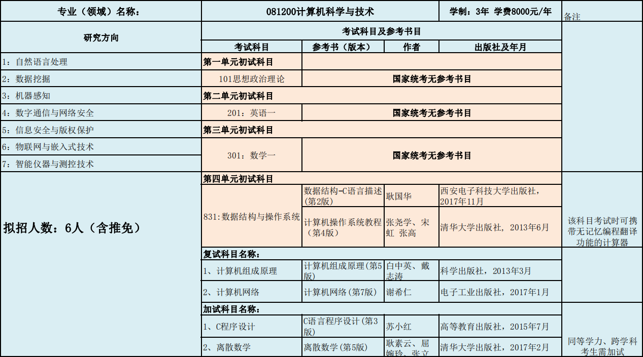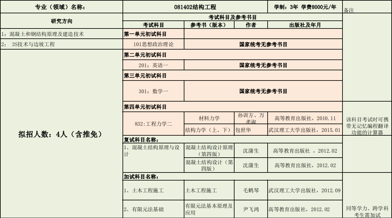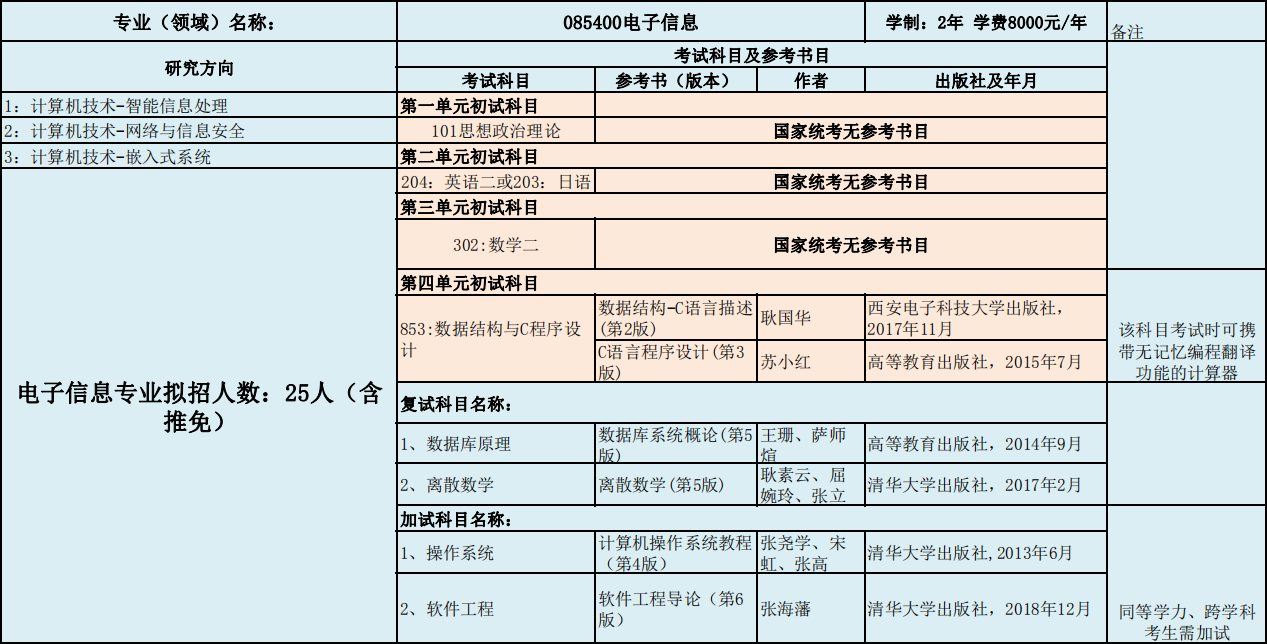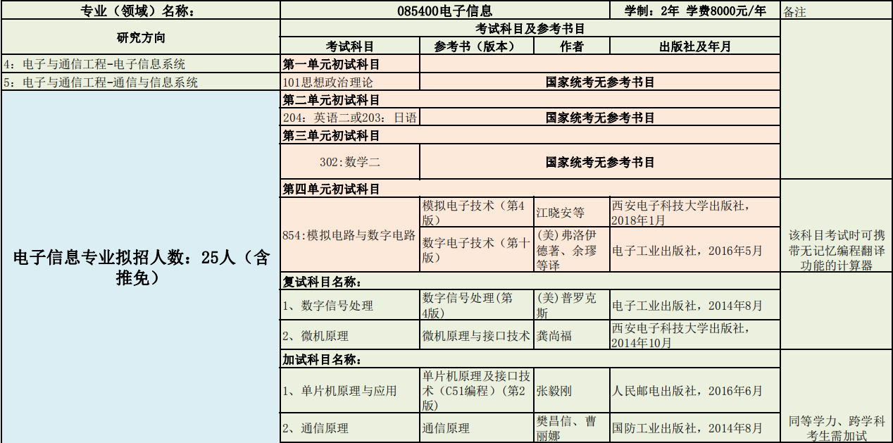 延边大学工学院2020年度招收攻读硕士学位研究生专业目录表(专业型)
