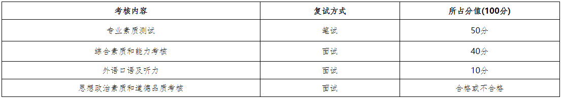 复试成绩的使用:(1)复试成绩为复试各方式考核成绩之和,复试成绩以100分为满分,60分为合格。(2)思想政治素质和道德品质考核及体检不作量化,不计入复试成绩。
