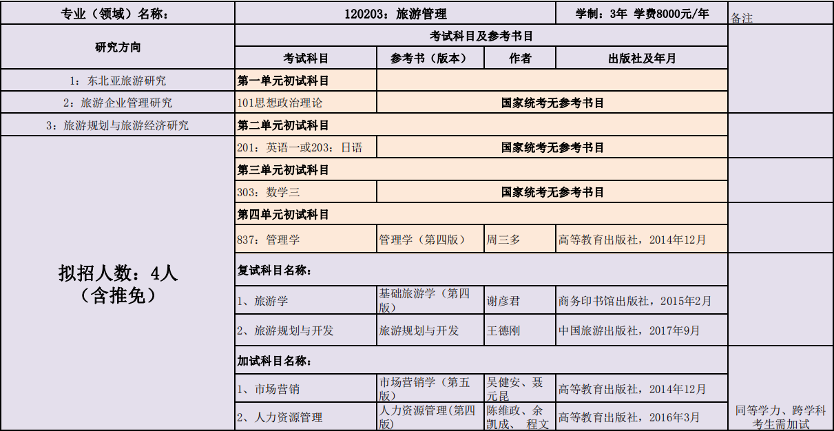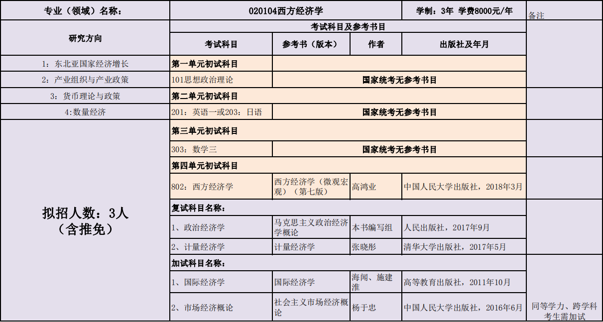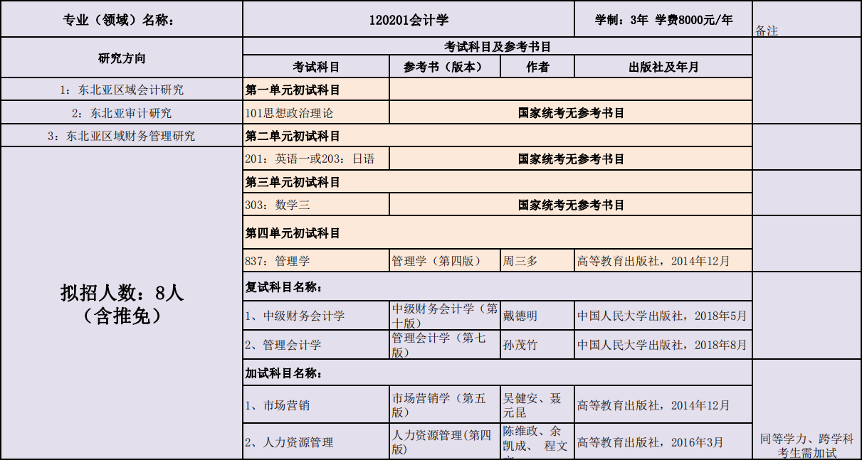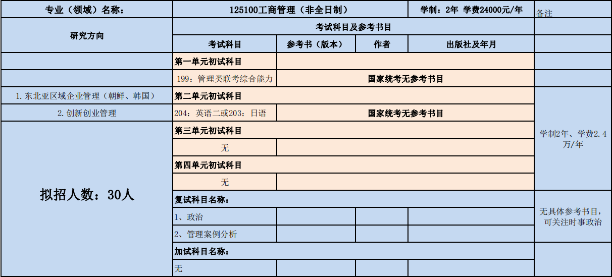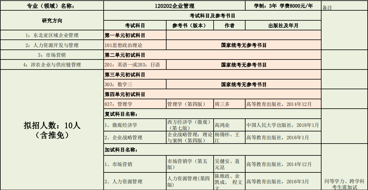 延边大学经济管理学院2020年度招收攻读硕士学位研究生专业目录表(专业型)