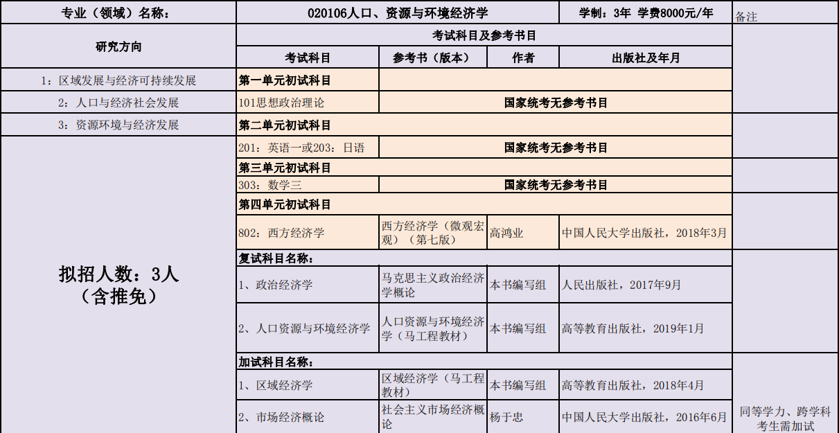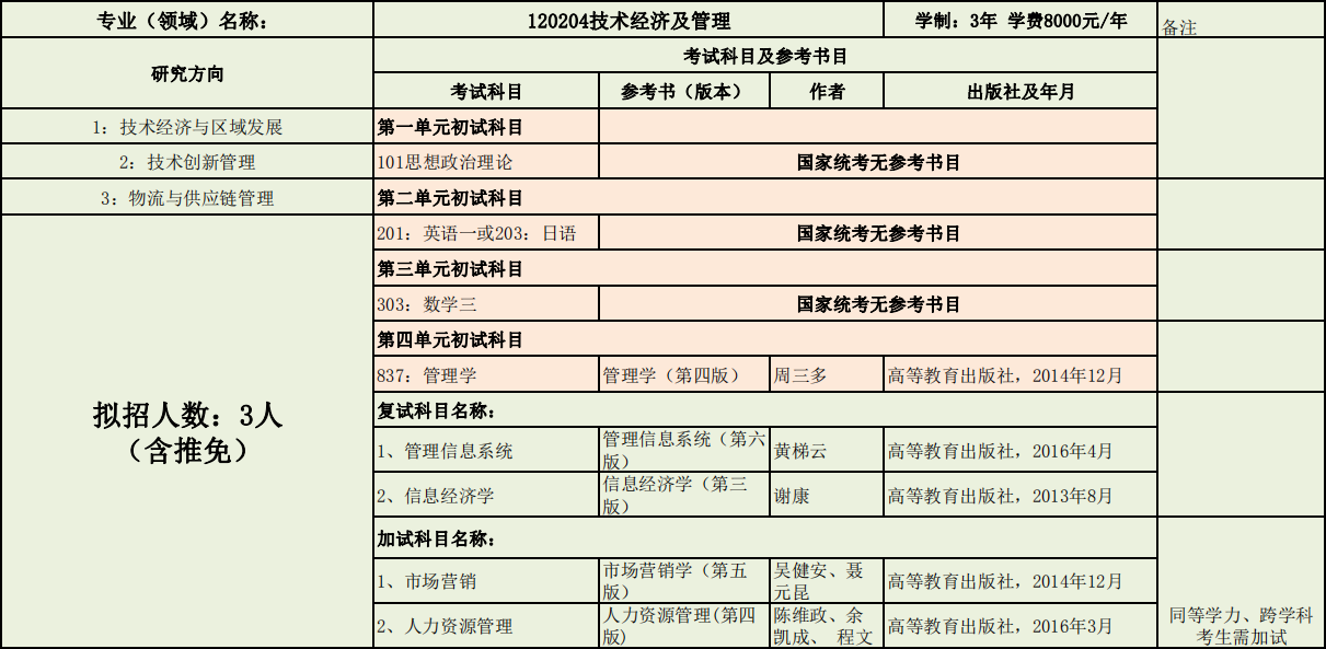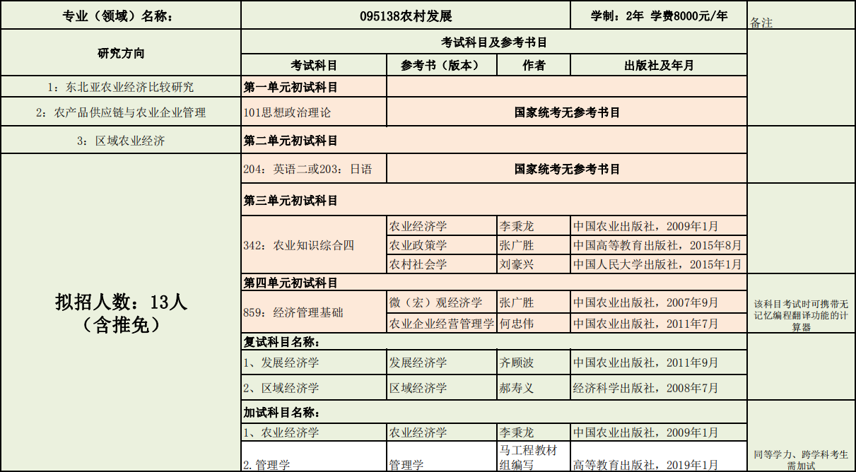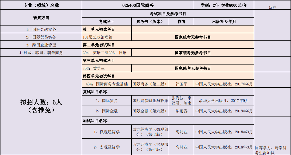 延边大学经济管理学院2020年度招收攻读硕士学位研究生专业目录表(专业型)