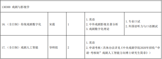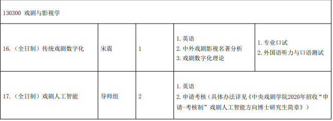 中央戏剧学院考博辅导班中央戏剧学院2020 年招收“申请-考核制”戏剧人工智能方向博士研究生简章