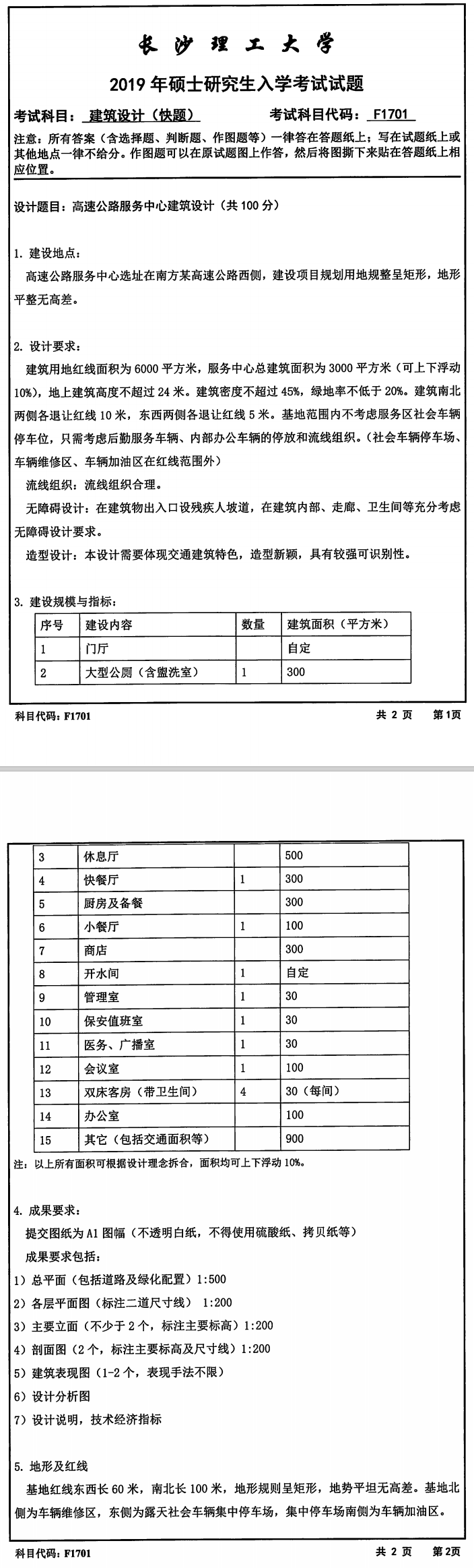 长沙理工大学考研辅导班:2019年长沙理工大学建筑学院考研复试F1701建筑设计考试真题