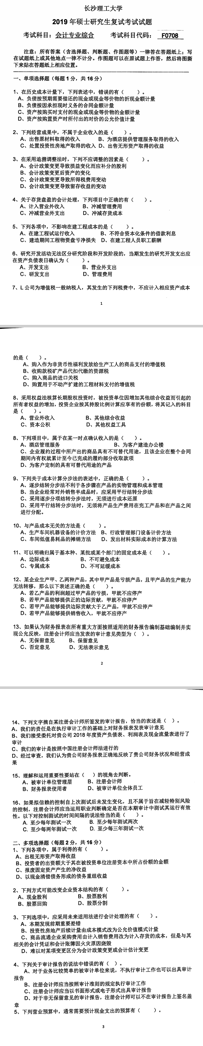 长沙理工大学考研辅导班:2019年长沙理工大学经济与管理学院考研复试F0708会计专业综合科目考试真题