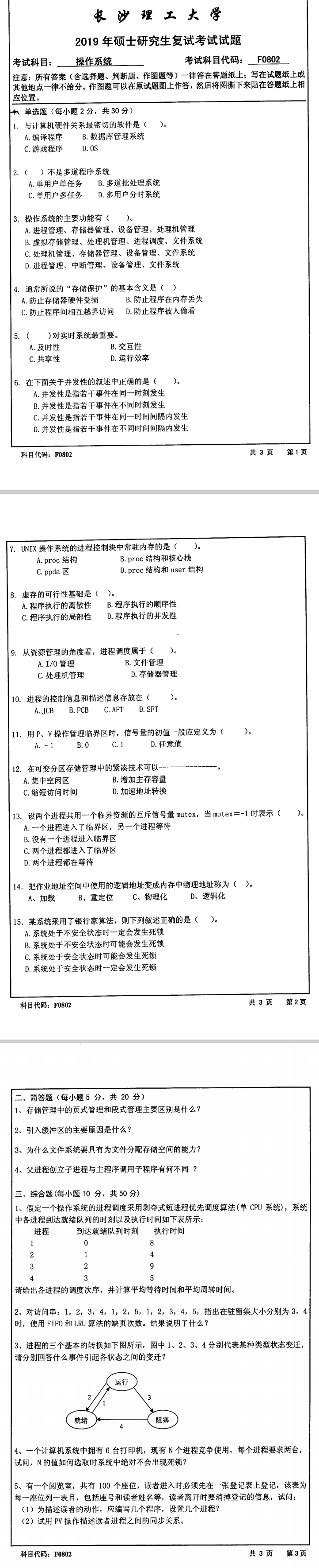 长沙理工大学考研辅导班:2019年长沙理工大学计算机与通信工程学院考研复试F0802操作系统科目考试真题