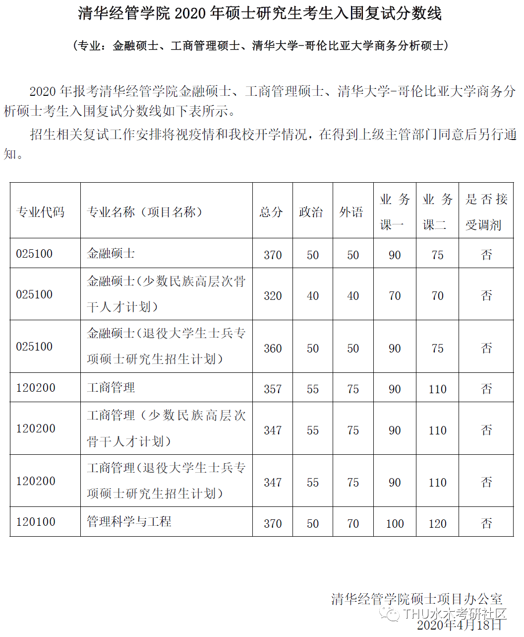 清华大学考研辅导班:清华大学经济管理学院2020年硕士研究生考生入围复试分数线