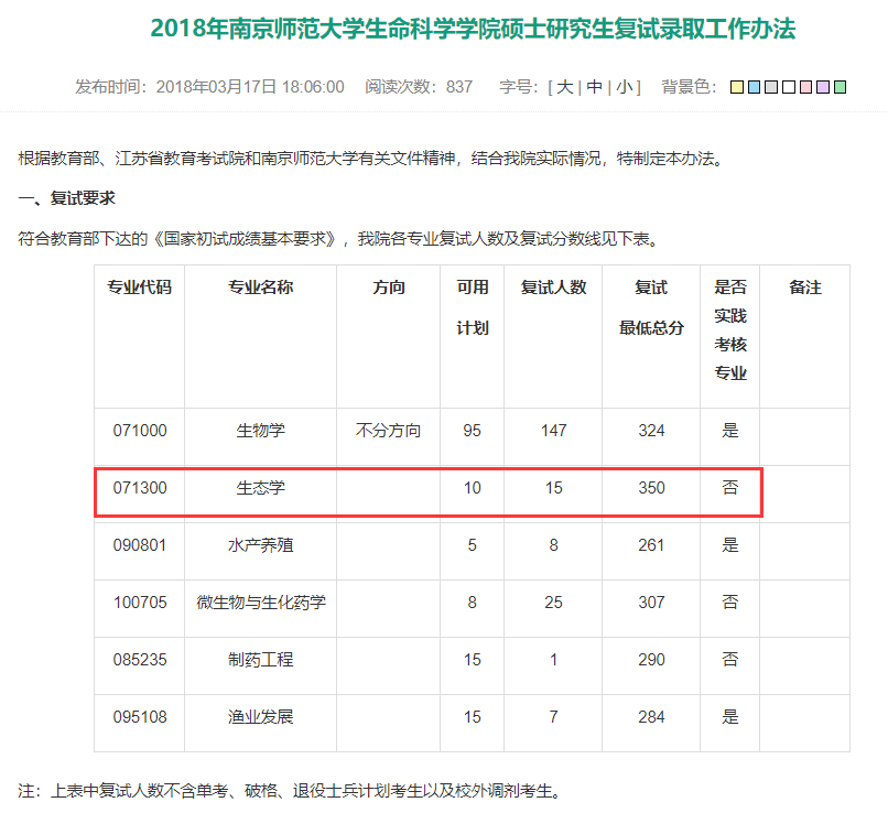 (2)南师大生态学专业基本情况分析及考研难度分析