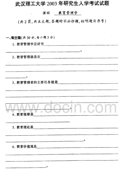 2020-2021年武汉理工考研辅导班:武汉理工大学814教育学管理2003年考研真题