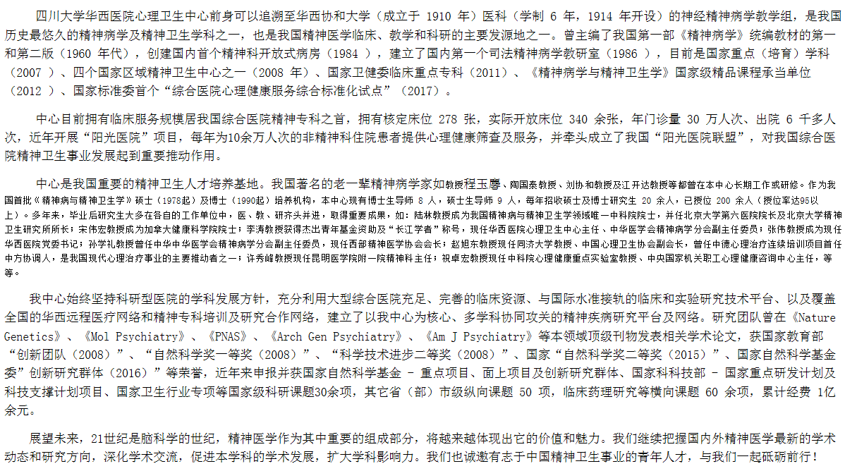 2020年四川大学华西临床医学院精神病与精神卫生学考研学科介绍
