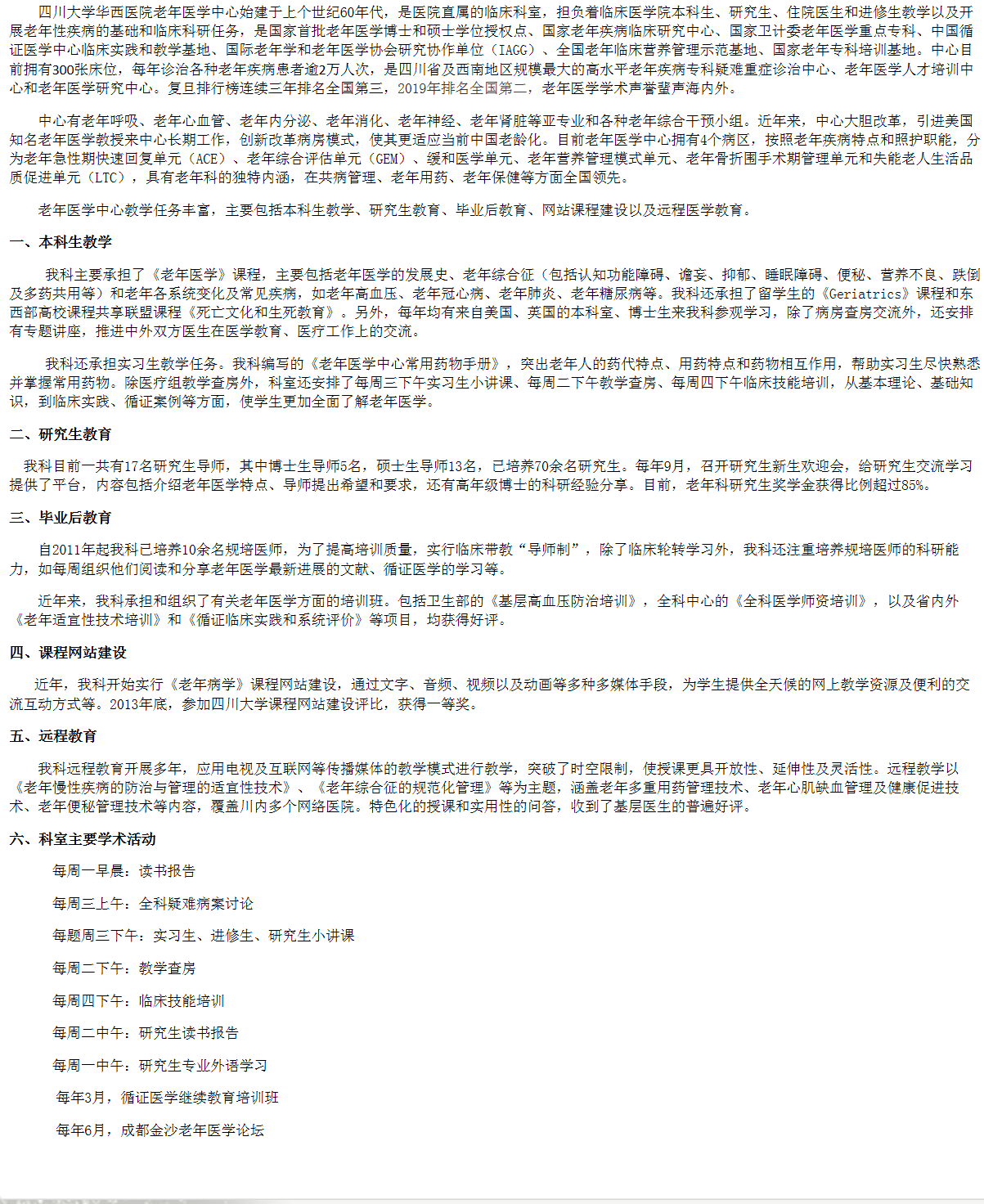 2020年四川大学华西临床医学院老年医学考研学科介绍