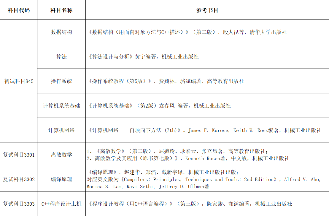 南京大学考研辅导班:南京大学计算机科学与技术系2020年硕士研究生考试科目及参考书目