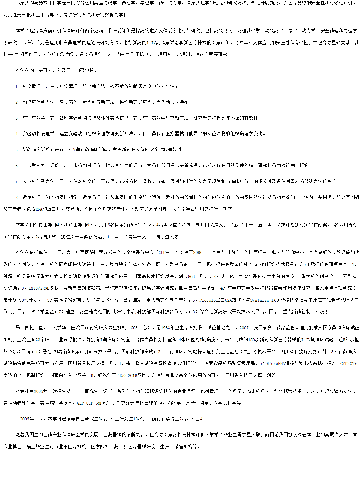 2020年四川大学华西临床医学院临床药物与器械评价考研学科介绍