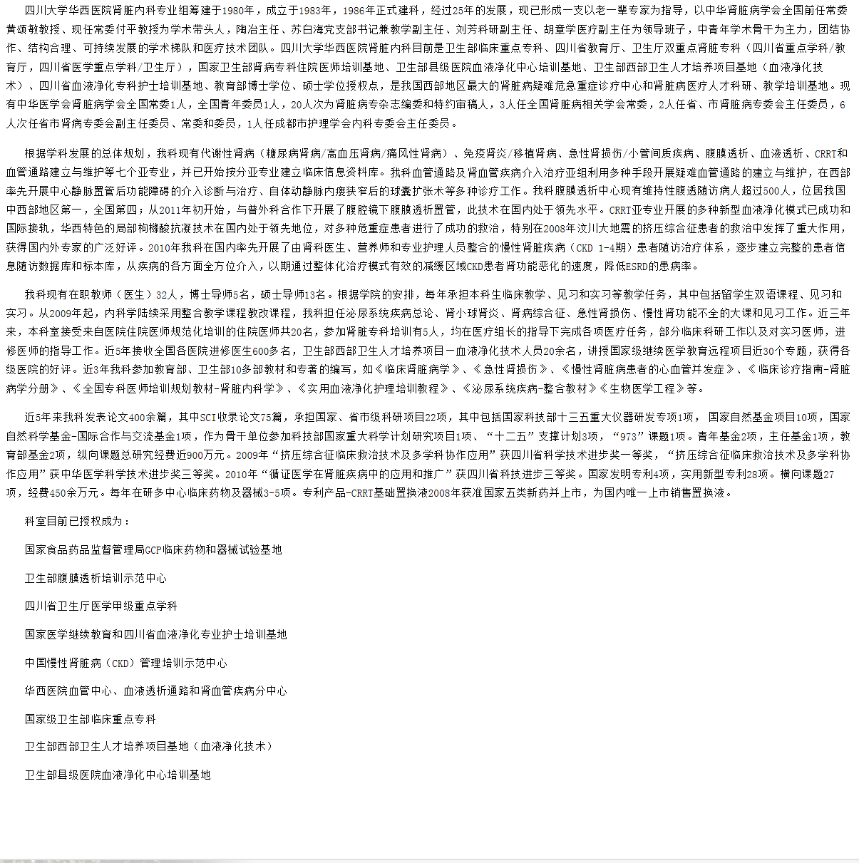 2020年四川大学华西临床医学院内科学(肾脏)考研学科介绍